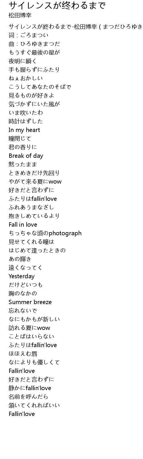 | [00:00.20] | サイレンスが終わるまで-松田博幸(まつだひろゆき) |