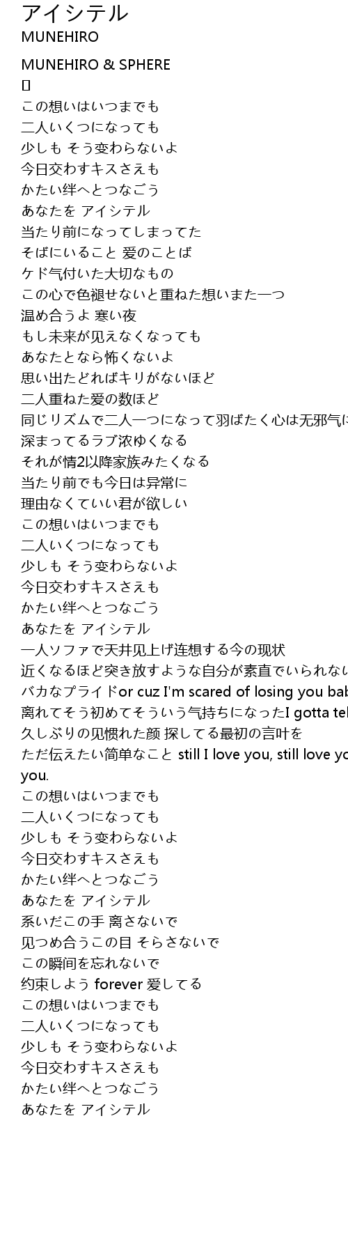 | ただ伝えたい简单なこと still I love you, still love you, still love you. | |