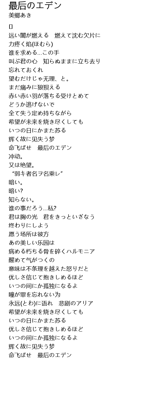 | 远い闇が燃える 燃えて沈む欠片に | |