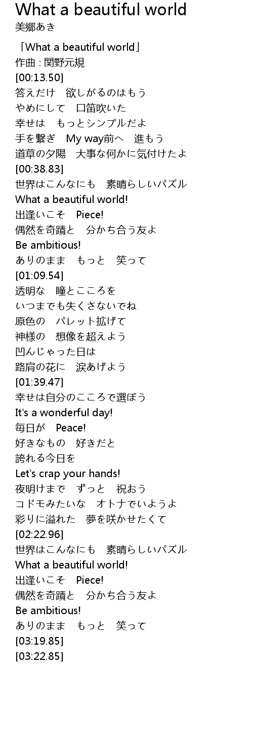 | [00:01.50] | 「What a beautiful world」 |