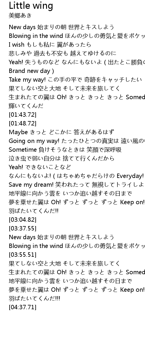 | [04:07.89] | 生まれたての翼は Oh! きっと きっと きっと Someday! |
