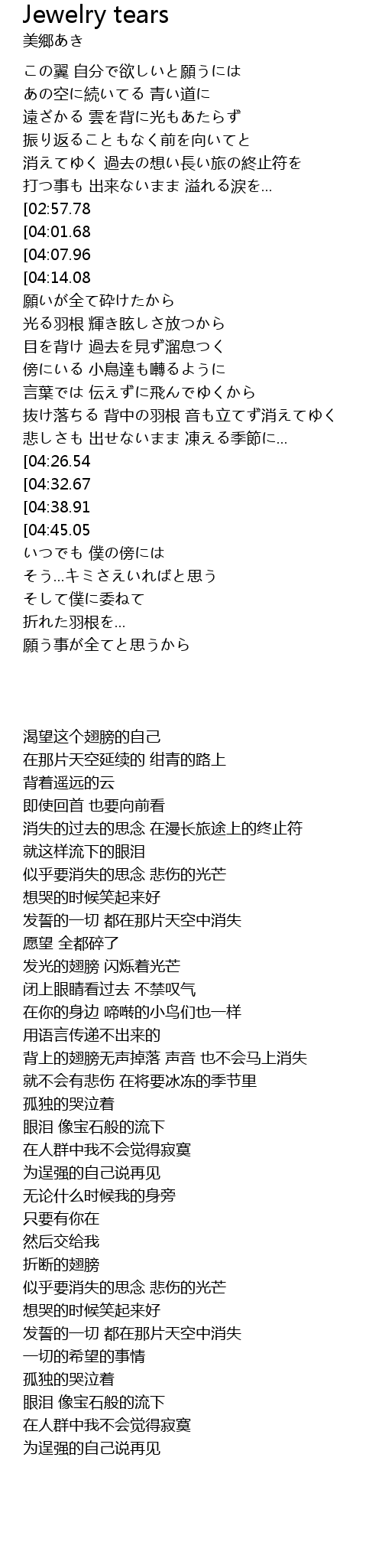 | [03:06.02][04:32.67] | 宝石のような涙流して |