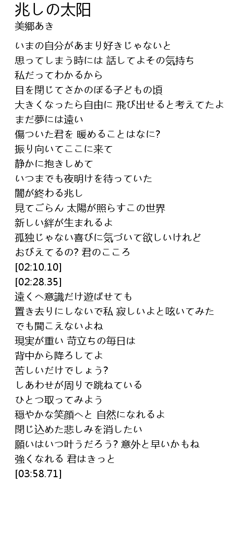 | [03:41.25] | 願いはいつ叶うだろう? 意外と早いかもね |