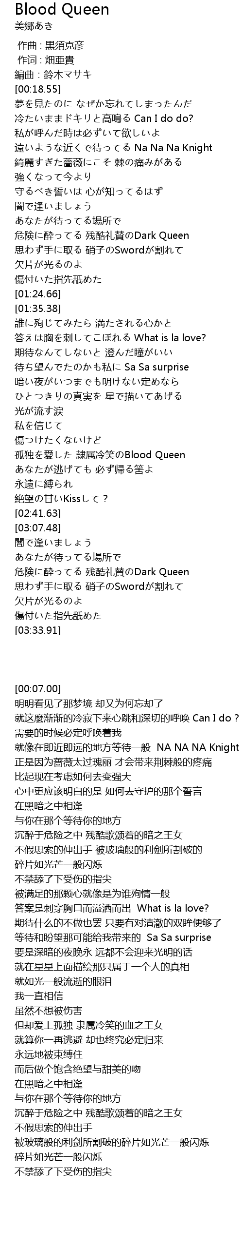 | [02:23.50] | gū dú ài lì shǔ lěng xiào Blood Queen |