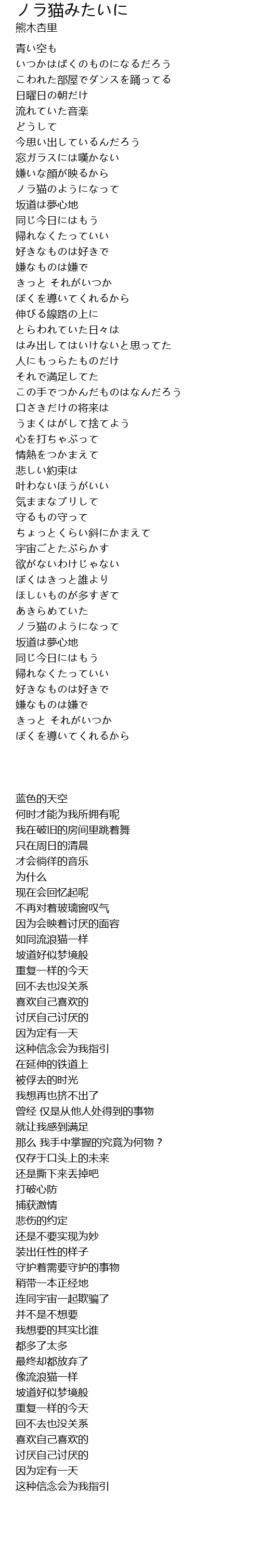 Song ノラ猫みたいに