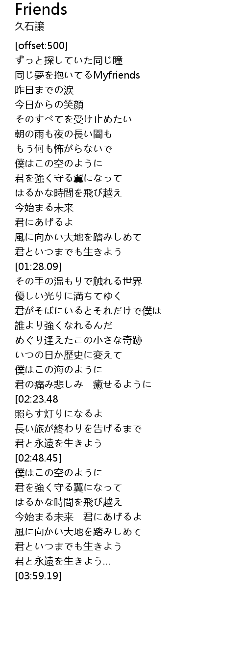 | [00:21.22] | 同じ夢を抱いてるMyfriends |