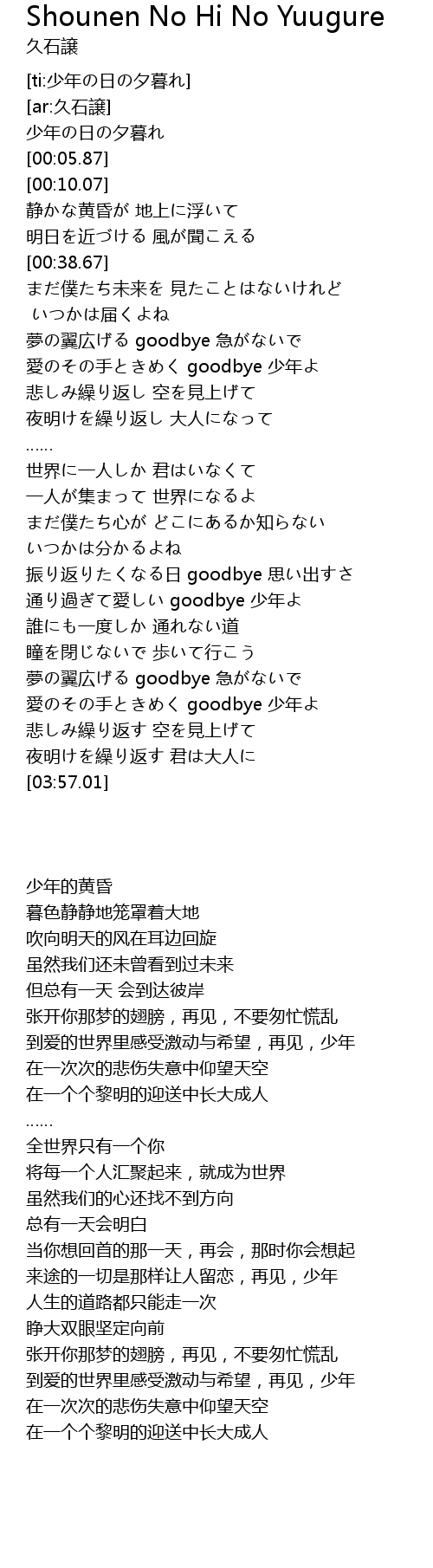 | [00:00.07] | 少年の日の夕暮れ |