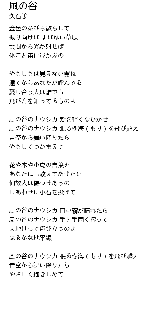 | Song | 風の谷 |