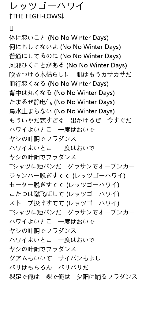 | こたつは蹴飞ばして (レッツゴーハワイ) | |