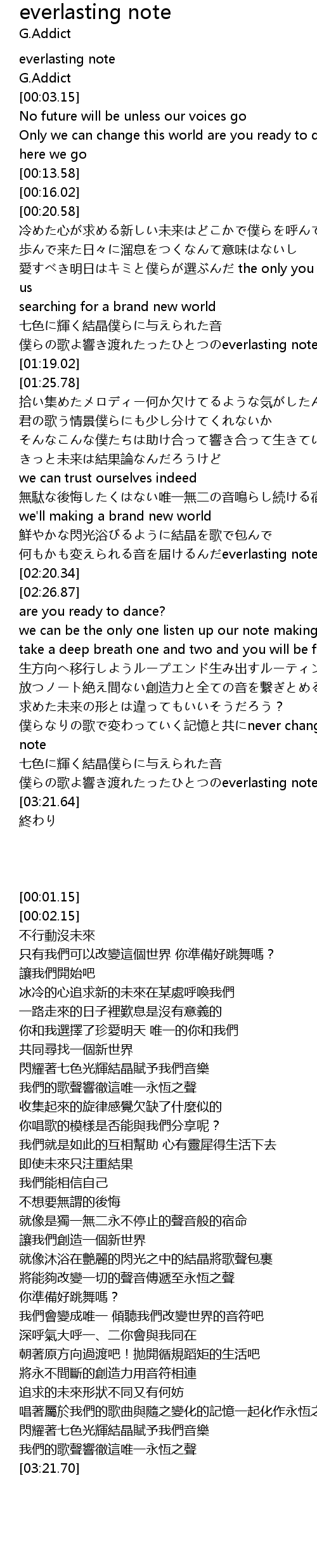 | [02:10.18] | 何もかも変えられる音を届けるんだeverlasting note |