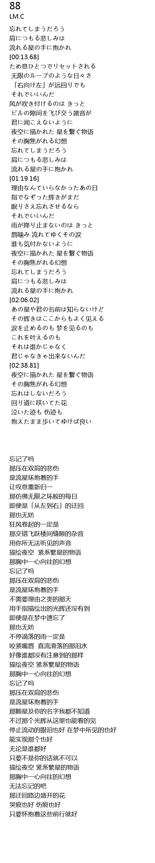 | [00:55.91] | 夜空に描かれた 星を繋ぐ物语 |