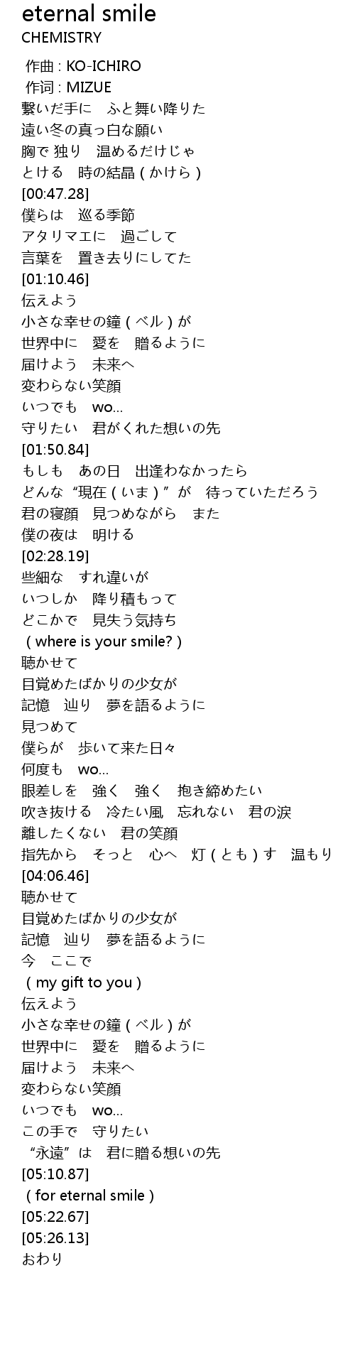 | [04:59.07] | “永遠”は 君に贈る想いの先 |