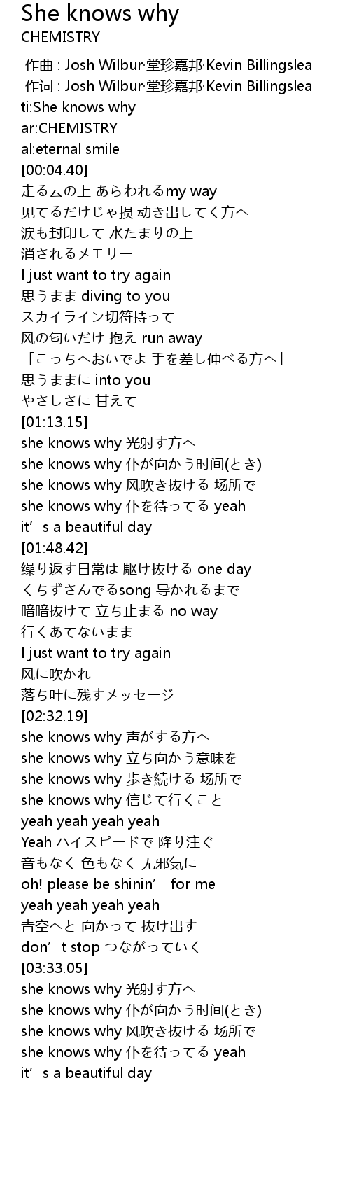 | [00:00.00] | ti: She knows why |