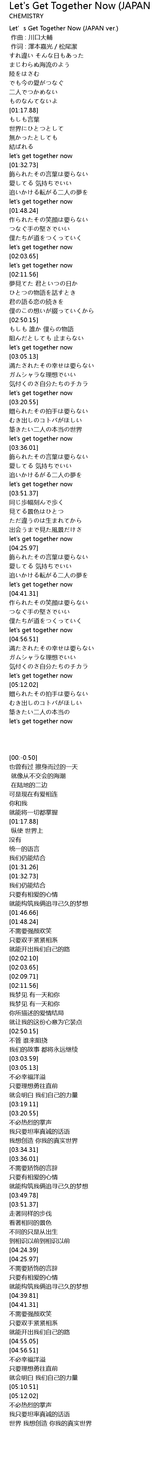 | [00:-0.50] | Let' s Get Together Now JAPAN ver. |