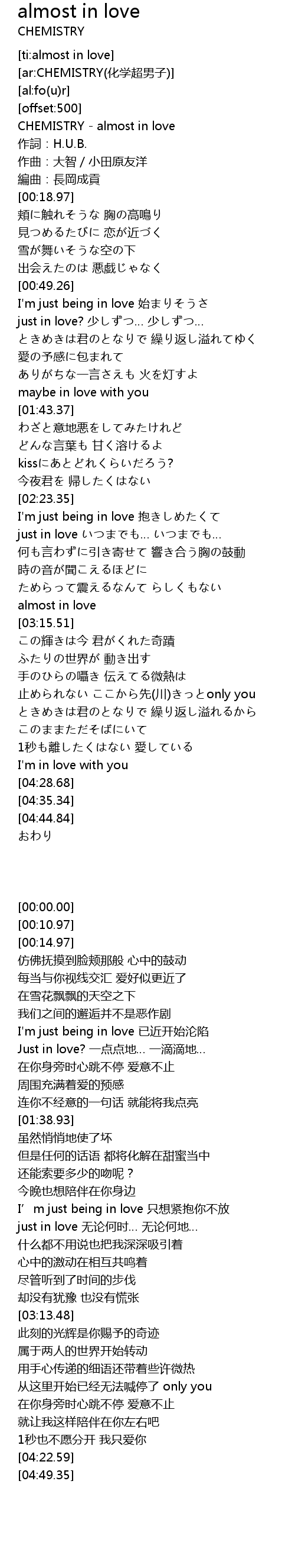 | [00:00.00] | CHEMISTRY almost in love |