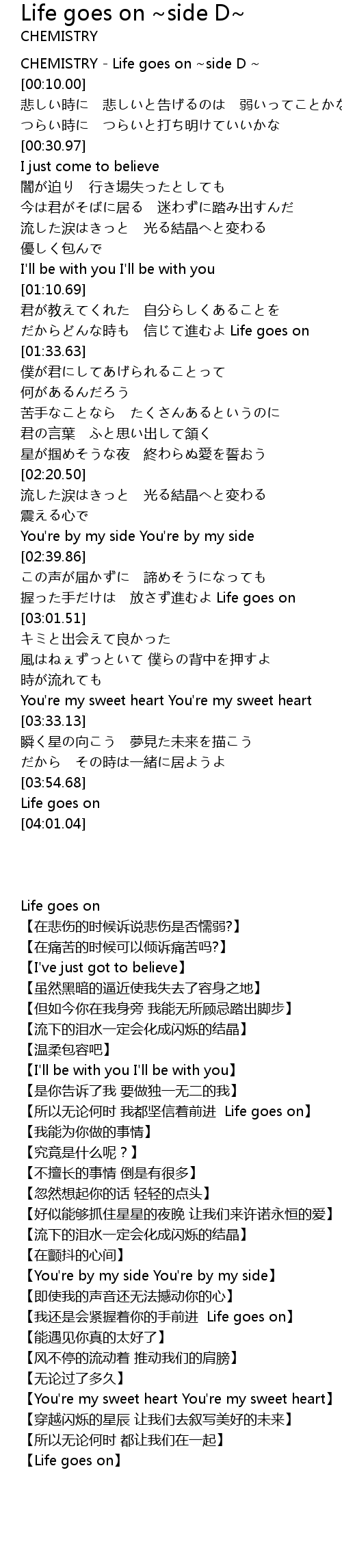 | [00:00.00] | CHEMISTRY - Life goes on ~side D ~ |