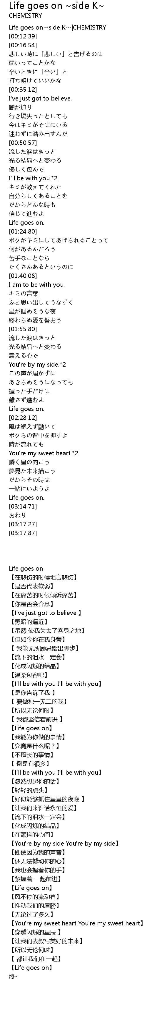 | [00:01.25] | Life goes on〜side K〜|CHEMISTRY |