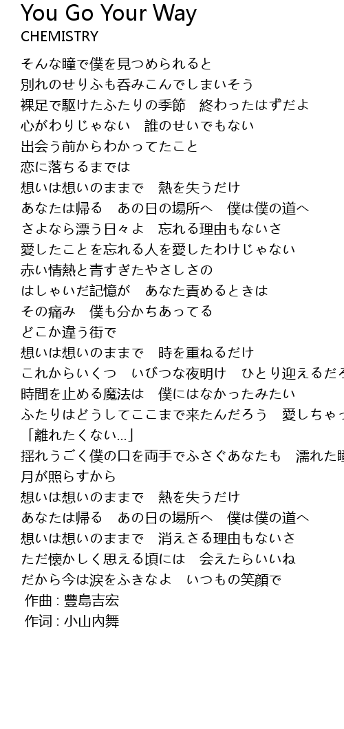| [01:19] | あなたは帰る あの日の場所へ 僕は僕の道へ |