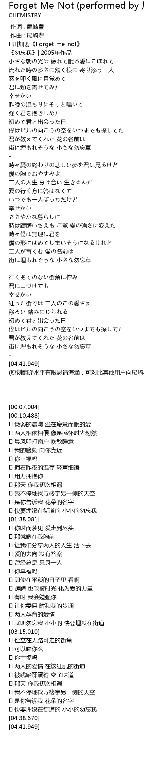 | [00:07.004] | chuān tián yào Forgetmenot |