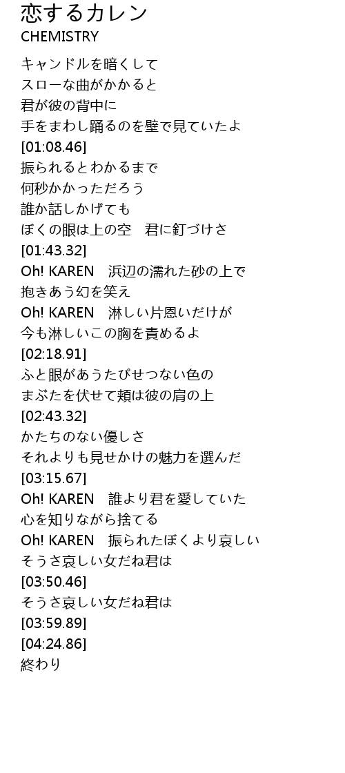 | [02:01.61] | Oh! KAREN 淋しい片恩いだけが |