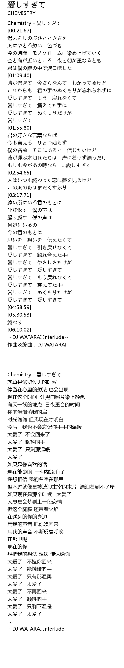 | [00:00.00] | Chemistry - 愛しすぎて |