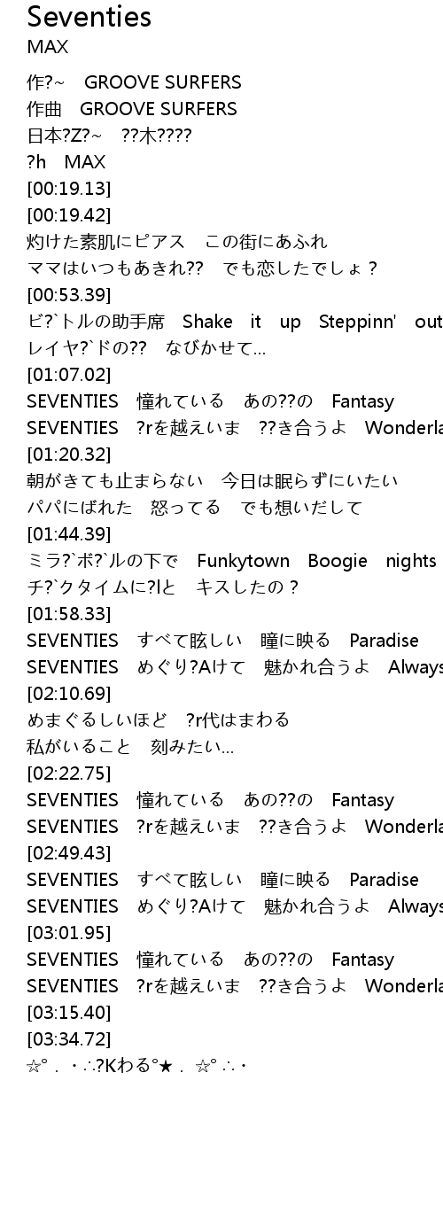 | [03:08.74] | SEVENTIES ?rを越えいま ??き合うよ Wonderland |