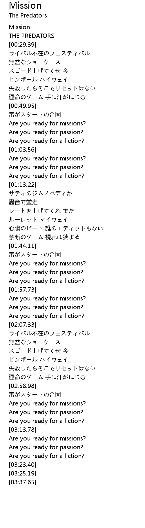 | [02:54.93] | 運命のゲーム 手に汗がにじむ |