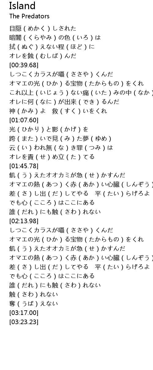 | [00:41.77] | しつこくカラスが囁(ささや)くんだ |