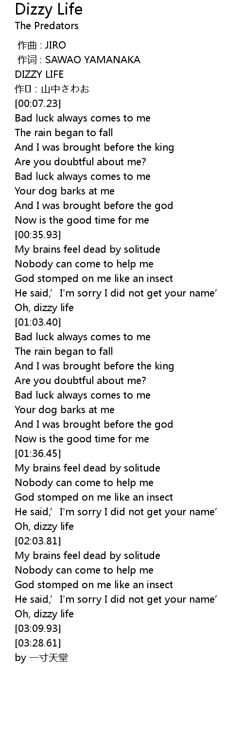 | [00:00.00] | DIZZY LIFE |