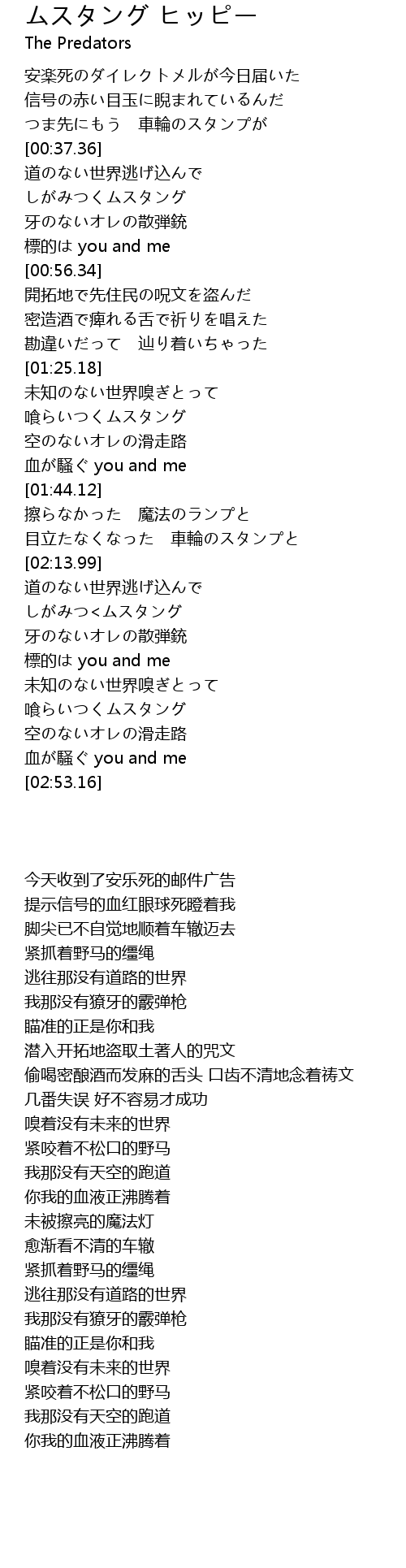 | [02:34.93] | 喰らいつくムスタング |