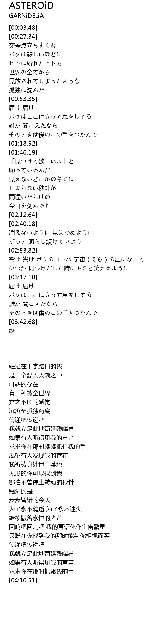 | [02:54.00] | 響け 響け ボクのコトバ 宇宙(そら)の星になって |