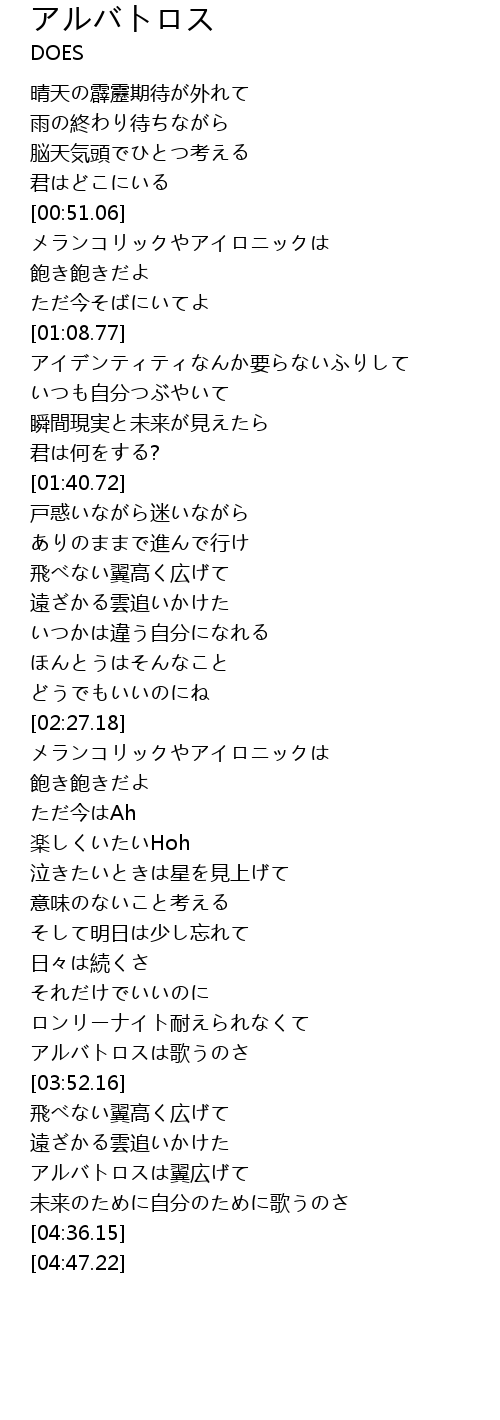 | [01:15.43] | アイデンティティなんか要らないふりして |