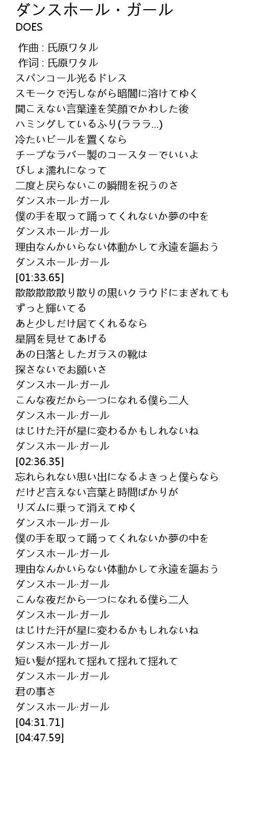 | [04:22.37] | ダンスホール·ガール |