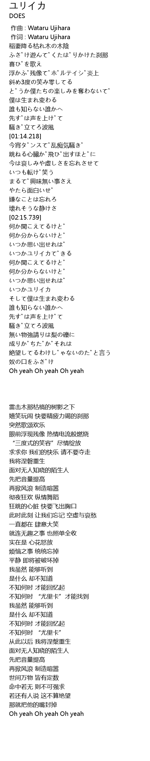 | [00:01.00] | zuò cí : Wataru Ujihara |