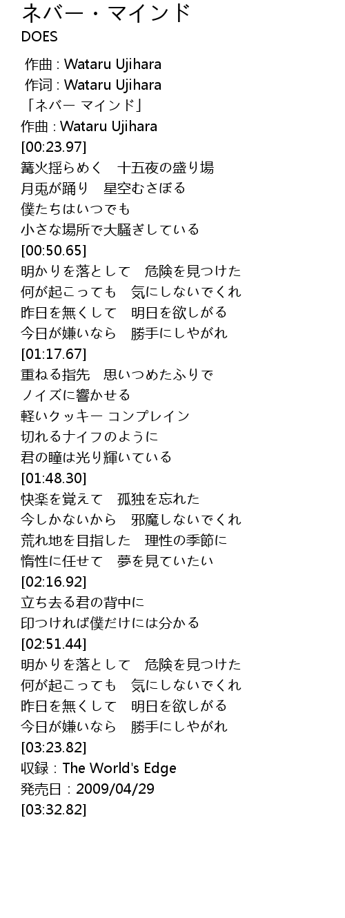 | [02:58.46] | 何が起こっても 気にしないでくれ |