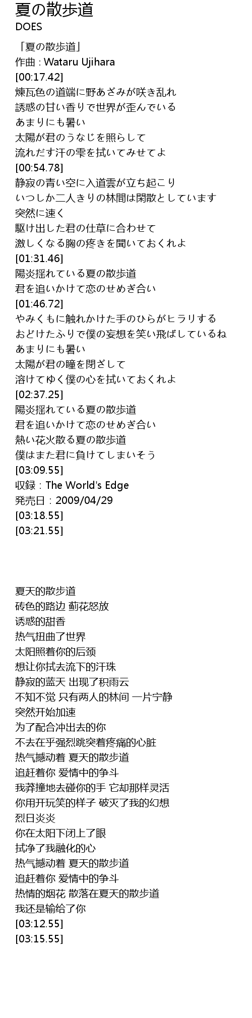 | [00:01.42] | 「夏の散歩道」 |
