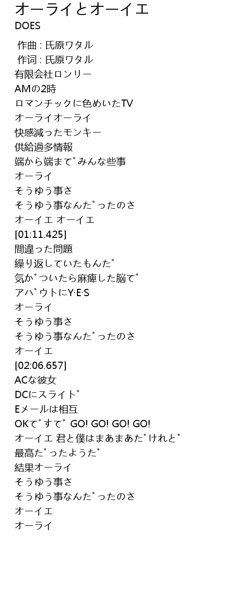 | [03:02.179] | オーイエ |