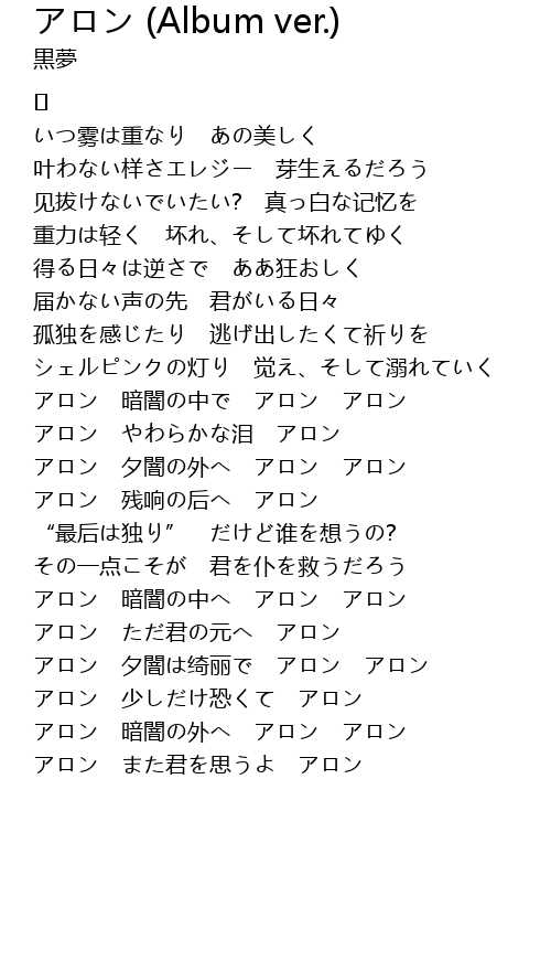 | Song | アロン (Album ver.) |