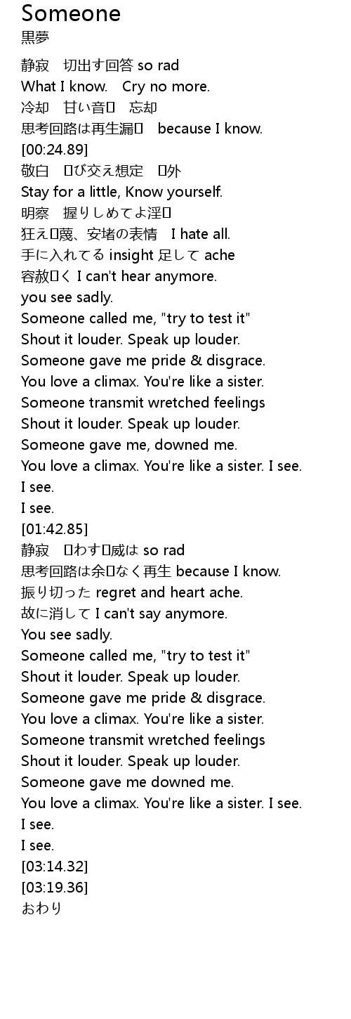 | [00:49.15] | 狂え�蔑、安堵の表情 I hate all. |