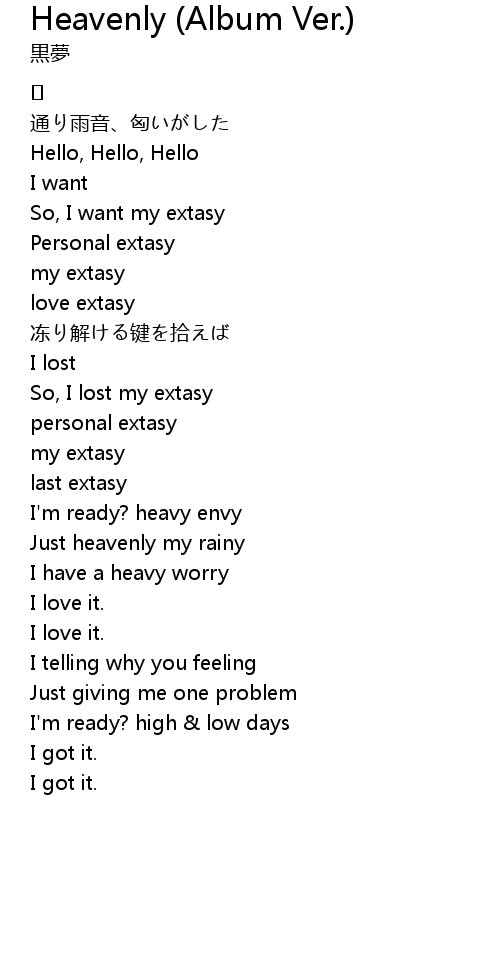 | So, I want my extasy | |