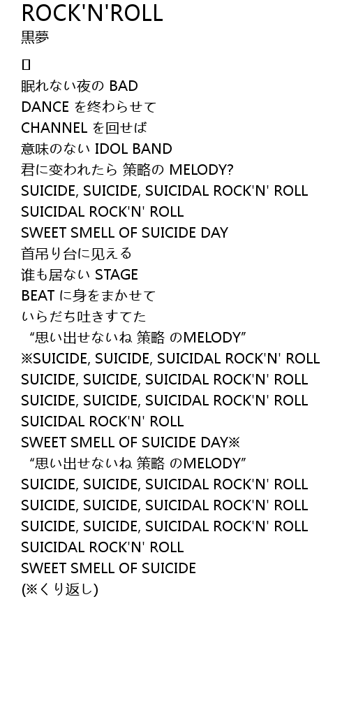 | ※SUICIDE, SUICIDE, SUICIDAL ROCK'N' ROLL | |