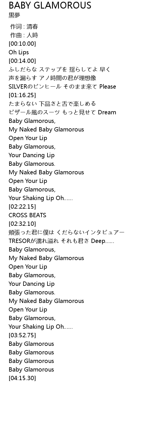| [00:38.50] | ふしだらな ステップを 揺らしてよ 早く |