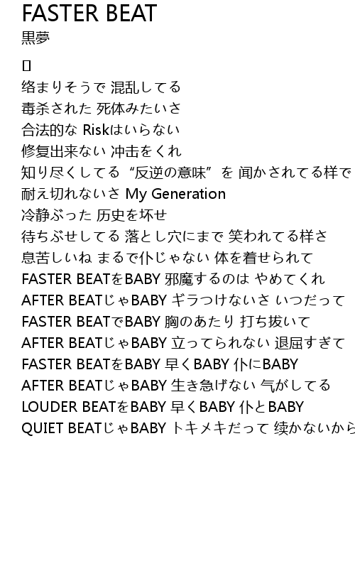 | FASTER BEATをBABY 早くBABY 仆にBABY | |