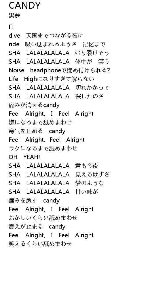 | SHA LALALALALALA 甘い味が | |