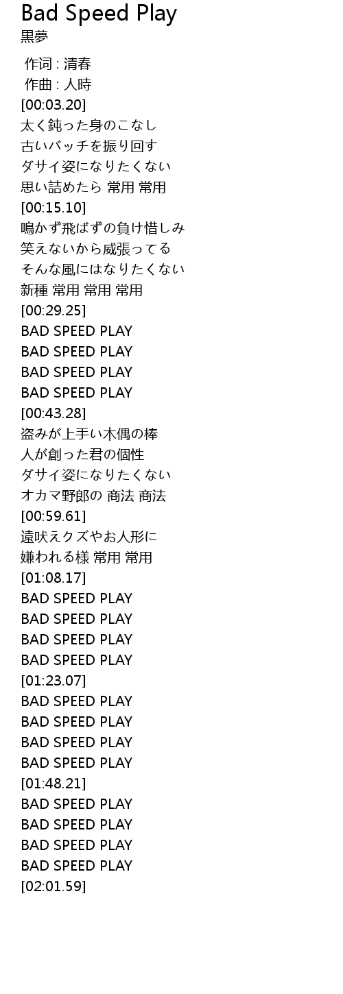 | [00:31.83] | BAD SPEED PLAY |