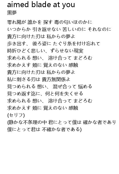 | 見つめられる 想い、 混ぜ合って 悩める | |