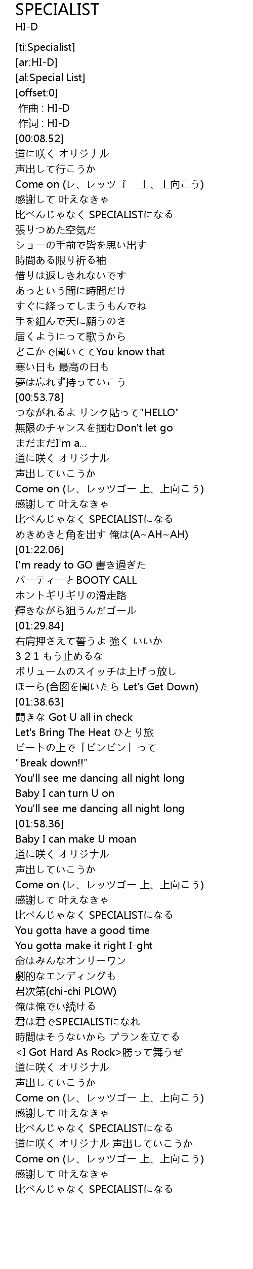 | [02:33.63] | 君は君でSPECIALISTになれ |