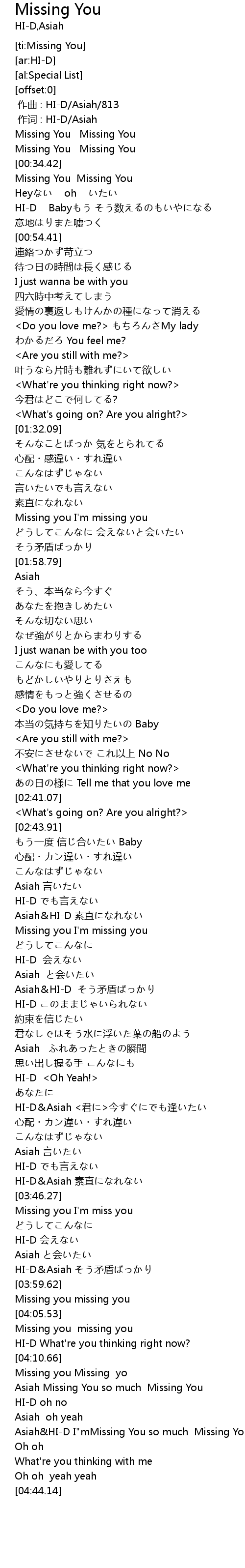 | [04:21.03] | Asiah Missing You so much Missing You |