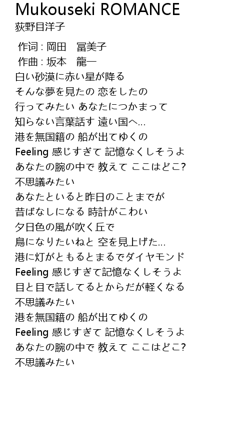 | Song | Mukouseki ROMANCE |
