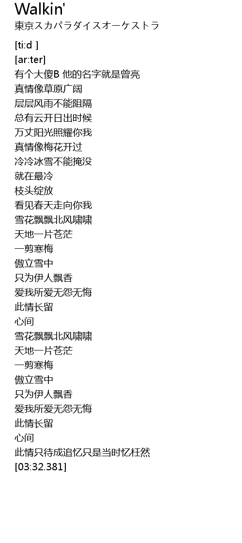 | [00:01.381] | 有个大傻B 他的名字就是曾亮 |
